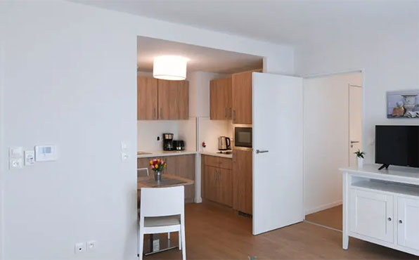 Nous proposons à la location des appartements prêts à vivre, lumineux et dotés du confort d’aujourd’hui. Du studio spacieux au 3 pièces avec balcon ou terrasse, chaque appartement est décoré avec soin et adapté aux besoins des seniors. Barres de maintien, WC surélevés, douche à l’italienne, larges passages de porte, literie de grand confort, domotique : tout est pensé pour favoriser votre autonomie. En venant habiter dans une Résidence Happy Senior, vous conservez toutes vos habitudes : votre médecin traitant, votre infirmier, votre kiné, vous recevez votre famille, vos amis… et vous gardez votre animal de compagnie, il s’y fera de nombreux amis.